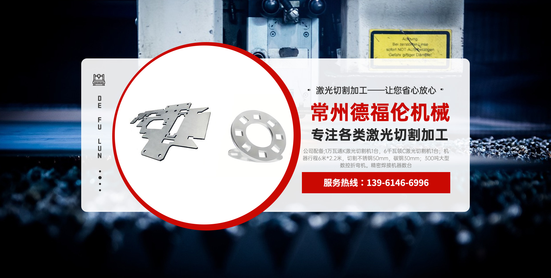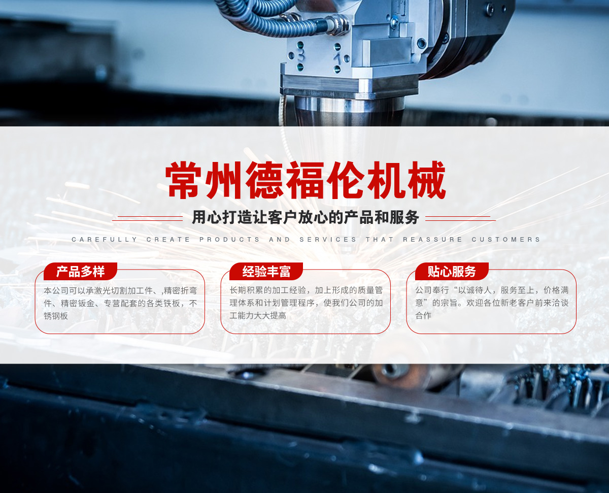 常州德福倫機(jī)械有限公司成立于2014年12月19號(hào),位于江蘇省常州市武進(jìn)區(qū)遙觀鎮(zhèn)建農(nóng)村劍童路56號(hào)西門(mén);公司配備;1萬(wàn)瓦通K激光切割機(jī)1臺(tái),6千瓦領(lǐng)C激光切割機(jī)1臺(tái);機(jī)器行程6米*2.2米,切割不銹鋼50mm,碳鋼30mm;300噸大型數(shù)控折彎?rùn)C(jī)。精密焊接機(jī)器數(shù)臺(tái)。本公司可以承激光切割加工件、,精密折彎件、精密鈑金、專營(yíng)配套的各類鐵板,不銹鋼板。長(zhǎng)期積累的加工經(jīng)驗(yàn),加上形成的質(zhì)量管理體系和計(jì)劃管理程序,使我們公司的加工能力大大提高,滿足客戶所需,是我們公司的目標(biāo)!公司奉行“以誠(chéng)待人,服務(wù)為上,價(jià)格滿意”的宗旨。歡迎各位領(lǐng)導(dǎo);老總前來(lái)洽談合作!